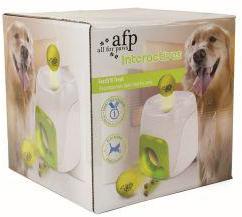 By placing the tennis ball (included) in the opening on top, the hatch will automatically open and provides a reward for your dog and your pet will receive a treat everytime the ball rolls out.