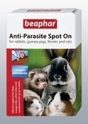 Beaphar Anti-Parasite Spot-On For Rabbits, Guinea Pigs, Rats & Ferrets Convenient, ready-to-use treatment for rabbits, guinea pigs, rats and ferrets. An approved veterinary preparation containing ivermectin in ready-to-use pipettes. Simply squeeze the contents of the pipette onto the back of your pet to control external parasites such as mites, lice, fleas and ticks, plus internal parasites such as roundworms. This size of treatment is suitable for use on animals over 300g, such as rats, guinea pigs, rabbits, and ferrets. Volume: 4 TUBE Product Nr: 15342 Brand: BEAPHAR