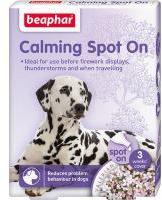 Beaphar Calming Spot On for Dogs can help alleviate problems such as excessive barking, destructive behaviour and inappropriate marking. These products can also help dogs and cats feel less apprehensive during difficult times including visits to the vet or kennels/cattery, fireworks, thunderstorms, travelling in the car or moving house.