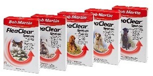 Bob Martin Flea Clear Spot on for Dogs is a low cost and effective flea treatment for dogs and puppies over the age of two months. Available in 1,2 and 3 pipette packs, using the same active ingredient as Frontline.