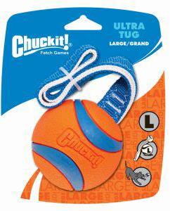 Durable rubber toy specifically designed for games of tug-of-war. This Chuckit interactive fun toy features a sturdy 2-ply nylon band attached to a durable rubber ball for long lasting games of fetch and tug. The band makes it easy to throw further. Highly buoyant and durable. Compatible with the ball launchers.
