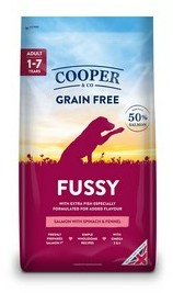 Cooper & Co Fussy Dog Food with extra flavour for fussy dogs, made with 50% Salmon & Trout.