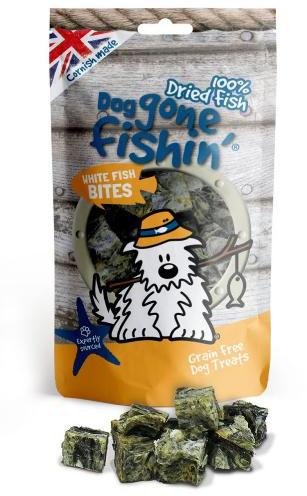 Dog Gone Fishing handy bite sized pieces of white fish dog treats, air-dried to lock in all the goodness. This healthy nutritious fish treat contains naturally occurring Omega 3.