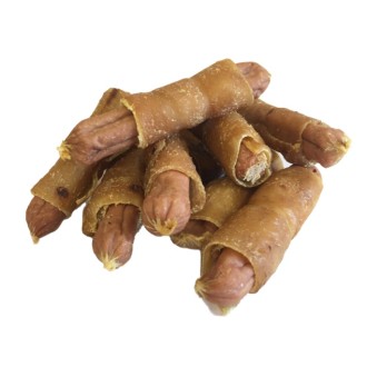 Doodles Deli gourmet chicken sausages, wrapped in pork rind, these delicious Pigs in Blankets are loved by dogs of all shapes and sizes. They are slow roasted in their own juices to ensure mouth watering taste in every bite!
