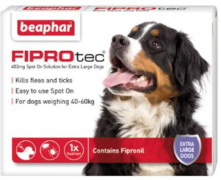 FiproTec for Extra Large Dogs is an spot on treatment to combat fleas and ticks for dogs over 12 weeks and weighing 40 to 60kg