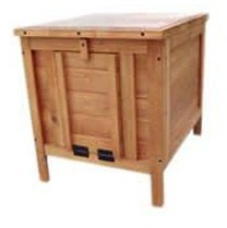 The Walter Harrison small animal hut has a hinged roof for top viewing and hinged front door that doubes as a ramp, and can be used with the Appleby and Sandford Runs and Metal Play Pen.