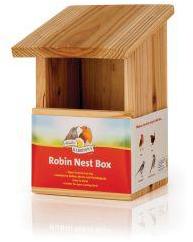 Slanted roof nest box made from 15mm gauge Fir. On the front of the box there is an 8cm high section, going across the full width of the box, that is completely open. This section can be used as a viewing panel as well as allowing birds access to the box. The roof overhangs the front of the box, providing protection against the elements.