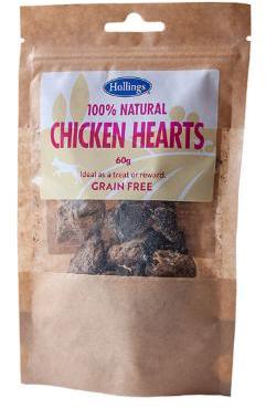Hollings Natural Chicken Hearts are tasty treats for dogs. They are grain free, healthy, 100% natural and nutritious.