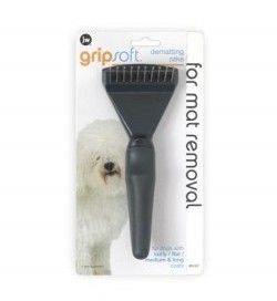 The JW Dematting Rake has long stainless steel teeth designed to cut through the toughest mats. Ideal for use on dogs with curly, flat, medium & long coats the JW Dematting Rack can be used to remove mats and knots from the inner layers of the pets coat and removing dead and shedding hair.