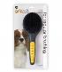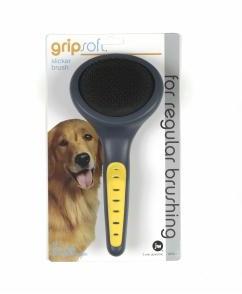 Details: The JW Slicker Brush has a round head and slightly angled pins mounted onto an air cushion to reduce excessive brushing force.