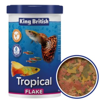 King British Tropical flake 200g Complete diet for all species of tropical fish. Promotes colour, condition and vitality.