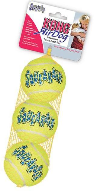 KONG combined two classic dog toys, the common tennis ball and the squeaker toy, to create the exceptional AirDog Squeakair. Our durable, high quality Squeakair tennis ball will not wear down a dog's teeth.