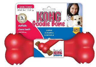 Goodie Bone is available in KONG's Classic red rubber and our Extreme, durable black formula for tenacious power chewers. Supervised use is recommended for power chewers.