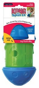 When pushed with a paw or a nose KONG Spin It tempts your pup by spinning and rolling away, rewarding with treats or kibble as it moves. Built from a durable material your dog will be sure to have on going mental stimulation while enjoying a yummy, entertaining experience. Dogs cant resist the array of snacks spinning inside and the textured surface makes it easy to propel adding to the on-going treat rewarding fun. Use instead of a food bowl to slow down eating and help control weight.