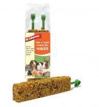 Mr Johnsons Crunchy Niblet Bars Herb & Carrot treats with clips to hang off the cage or may be laid on the floor depending on what your pet friend prefers. Each bar has been carefully dried to give it the perfect texture for small animals to nibble their way through and enjoy.