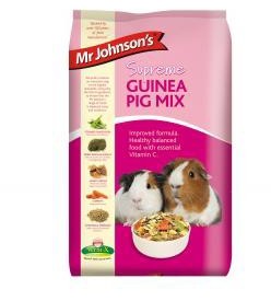 Tasty nutritious food from Mr Johnsons for guinea pigs, a blend of steam flaked peas, flaked barley, flaked maize, flaked beans, alfalfa, grass, carrot, verm-x herb blend.