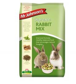 Mr Johnson's Supreme RABBIT MIX is a fibrous, nutritious, wholesome blend of steamed flaked peas, cereals, pellets, extrusions and herbs - supplying your rabbit with a tasty, healthy food in a variety of textures to encourage the natural foraging instinct. Feeding the correct diet to your rabbit is essential for maintaining good health. Rabbits require high fibre levels in their diet to assist normal digestive function and aid essential dental wear. Mr Johnson’s Supreme RABBIT MIX is a complementary feed and should be fed together with unlimited access to good quality hay which is an important source of fibre and an essential part of your rabbit’s diet. A small quantity of fresh greens should also be fed daily and fresh clean water must always be available.