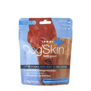 Dog'Skin is a premium, veterinary strength skin & coat supplement with proven 360ᵒ support for itchy dogs who want to feel good. Dog'Skin effectively calms sensitive skin and supports skin health and repair as well as supporting the immune system.
