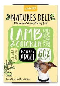 Lamb 30%, Chicken 30%, Carrots, Peas, Brown Rice (4%), Minerals, Chicory Root (Prebiotic FOS 0.2%) , Rosemary (0.1%)