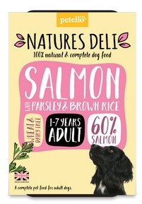 Salmon 60%, Carrots, Peas, Brown Rice (4%), Minerals, Chicory Root (Prebiotic FOS 0.2%) , Parsley (0.1%).