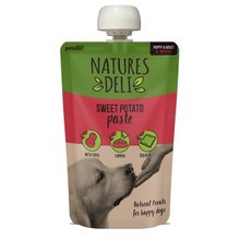 Natures Deli Sweet Potato paste Dog treat gives your best friend the high-quality, wholesome ingredients he loves like real sweet potatoes, in a lip-smacking paste like treat that’ll keep him coming back for more. Its convenient easy-squeeze pouch makes it easy to squeeze a desired amount straight onto Licki mats or KONG classic shaped toy or simply dab straight from the nozzle to your dogs mouth, no spoon needed! Perfect as a delicious anytime snack or to make training sessions more rewarding.