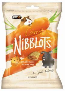 Carrot Nibblots treats from Mark and Chappell have been formulated to maintain small animals wellbeing. Each treat is comprised of a delicious crispy cereal shell containing a cream filled fruity centre with Omega 3. Help to promote bond between pet and owner.