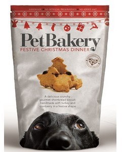 The Pet Bakery Festive Christmas Dinner are a delicious crunchy gourmet shortbread biscuit handmade with Turkey and Cranberry in a festive shape.Made with only top-quality ingredients, no artificial preservatives and no added salt, these artesian Pet Bakery doggie delights are the perfect treat for your pampered pooch.