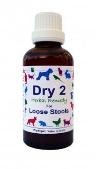 Phytopet Herbal support for loose stools, squits and irratable bowel syndrome (IBS). Fast acting, combination of botanical extracts. Liquid for ease of administration. No fighting to give tablets, just add drops to water, food or treat. Dry 2 is safe to use on puppies, etc. Just add to food, drinking water or treat.