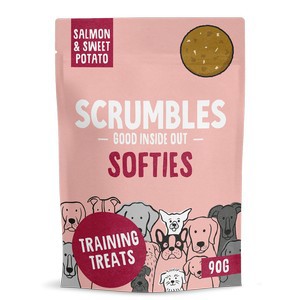 Scrumbles Softies Training Treats are the ultimutt guilt-free natural dog training treats. Baked gently to a soft bite, the button-shaped treats are packed full of functional and beneficial ingredients like sweet potato and yucca to support healthy digestion. Along with scrumptious salmon. Made with natural, responsibly sourced ingredients and served in a plastic-free, compostable bag. Treat time just got a whole lot tastier!