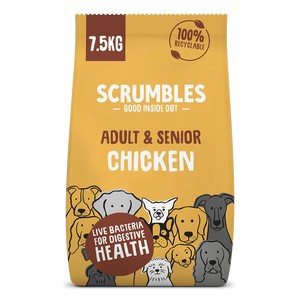 Scrumbles Dry Dog Food Chicken is a complete gluten-free meal for all lifestages. This recipe and kibble size is best suited for adults and senior breed dogs. Our recipes are all made within the UK to tread lighter on the planet and use all-natural ingredients with digestive health at the core. We add probiotics to aid digestion and support the immune system. Perfect for sensitive stomachs, the recipes are free from common allergens and made without artificial nonsense nor naughty naturals added sugars and salt. Just delicious natural ingredients that your dog will love. Taste approved by our family pets Smudge and Boo.