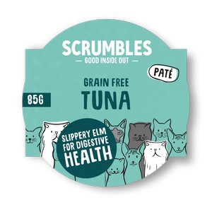 This is a complete tuna, wet food with gut friendly slippery elm for cats, made in the UK. All Scrumbles recipes are designed to be gut friendly, perfect for sensitive stomachs. Inspired by our cat and dog, Boo and Smudge, we use only the highest quality ingredients with no nasties like artificial colours or preservatives, no added sugars or salt and we gently cook everything for maximum digestibility. Perfect for sensitive stomachs.