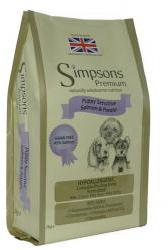Simpsons Premium Puppy Food Sensitive Salmon & Potato is a nutritious balanced grain free diet that is suitable for the early weaning stage for all breeds. Suitable through to adult height for small/medium breeds. Suitable for Large Breeds up to 18 months. An ideal food for puppies with sensitive skin and/or delicate digestions. Made with a total of *45% Salmon it is very digestible and highly palatable making it ideal for fussy eaters and containing all the necessary vitamins and minerals for growing puppies.