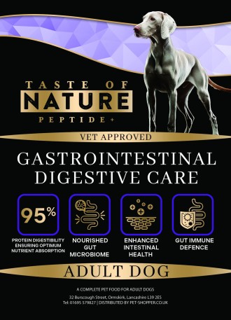 A healthy digestive system is very important to the overall health of dogs. The main role of the digestive (gastrointestinal) tract is to digest food and absorb the nutrients to use for energy, growth, maintenance and repair. The digestive tract also provides a barrier between the external environment and the dog’s internal environment, keeping out potentially pathogenic organisms and harmful substances. Poor digestive health can cause discomfort for dogs, raise concerns for owners and potentially require veterinary intervention. The Peptide+ Digestive Care recipe has been specifically formulated to help aid digestive issues using the power of peptides.