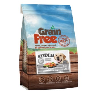 Grain Free Senior Dog Food From Taste of Nature with Trout, Salmon, sweet potato an Asparagus. a natural balanced diet for your dog..