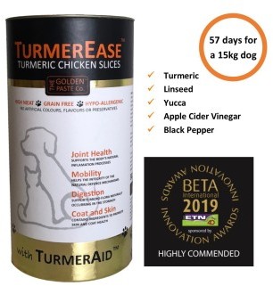 Golden Paste Company TurmerEase Pet Supplement was awarded HIGHLY COMMENDED in the BETA International Innovation Awards 2019