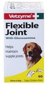 ALL ABOUT FLEXIBLE JOINT Flexible Joint with Glucosamine and fish oil will help to maintain healthy supple joints, and is ideal for older dogs and larger breeds, which are prone to joint problems. This once-a-day bite will help keep your dog happy, on the move and enjoying their walkies for many years. HOW IT WORKS B Complex is a group of water-soluble vitamins and a daily intake is required. B Complex helps * Promote a shiny healthy coat * Promote fitness and vitality * Guard against nervousness * Release energy to muscles Glucosamine with fish oil helps: * Maintain healthy joints * Maintain flexible and supple joints * Promote a healthy circulation. Ideal For: * Older dogs * Larger breeds * Dogs prone to joint problems * Feeding with all pet foods Regular use will help prevent future joint problems. Daily Recommendations