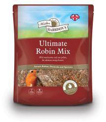 Walter Harrisons Ultimate Robin Food specially formulated with high energy ingredients including suet, mealworms and sunflower hearts. Perfect for feeding Robins all year round. Can be fed from a seed feeder, but best fed on a bird table or on the ground.